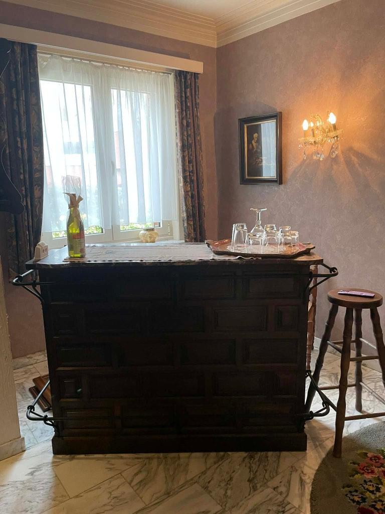 12 apr 26TopadvertentieCatawikiHeel België - Vintage houten bar in brutalistische stijlVintage houten bar in brutalistische stijl duitsland jaren ‘50. Wat een prachtige set. Massief eikenhouten toog met sierlijk reliëf aan de voorzijde.de bar is open aan de achterzijde en heeft een gietOphalen