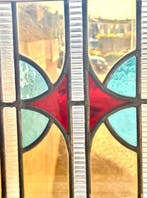 11 okt 25TopadvertentieCatawikiHeel België - Art Deco Glas-in-loodraam - Geometrische gekleurde vlakken -Art deco glas-in-lood raam uit belgië uit 1920–1930, met geometrische gekleurde vlakken, 64 cm hoog bij 28,5 cm breed en 0,7 cm dik, gewicht 2389 g. Strak art deco glas-in-lood raam afkomstig uit belg