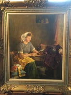 29 mrt 26SofieMerchtem - Peter Gotz Pallmann ( 1908-1965) - Ritratto di casalingaPortrait d'une ménagère lisant, néo-impressionniste huile sur panneau par peter gotz pallmann (1908–1965), allemagne, 1960, signé à la main, en excellente condition, 69 × 79 cm avec cadre, édition