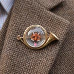 - Broche - 14 karaat Geel goud - 14-karaats goud Essex CrystalEen circa 1910 14k geelgouden broche in de vorm van een jachthoorn, met een essex- kristal met een voskop, weegt 11,8 g en verkeert in goede staat, laboratoriumrapport afwezig. Titel: broche - 14 kara