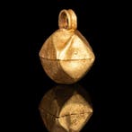 - Bactrian Gouden hanger (Zonder minimumprijs)Bactrisch gouden hanger, circa 1e–2e eeuw na christus, gehamerd uit dunne goudfolie met een biconische polyhedrale romp en een ronde bevestigingsring, 2 cm × 1 cm × 1 cm, gewicht 2,4 g, in zeer goede