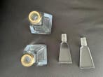 6 apr 26TopadvertentieCatawikiHeel België - Ensemble coiffeuse (2) - Verre, ArgentDeux flacons en verre art déco provenant de france, datés environ 1930–1940, avec goulots et bouchons en argent, verre clair multifacetté, dimensions 18 cm de haut et 7,5 × 7,5 cm de base, poids total