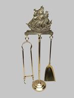 - Openhaard accessoire (4) - Nautisch open haard set - GegotenVierdelig nautisch haardstel van gegoten messing, vintage stijl, uit de eerste helft van de 20e eeuw, afkomstig uit het verenigd koninkrijk. Een chique ,nautisch haardstel.een item wat niet mag ontbre