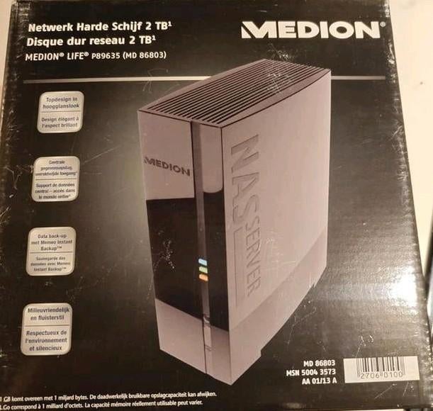 - Netwerk harde schijf server MedionNetwerk harde schijf server medion. Perfecte staat. 2 Tb opslagcapaciteit. Benaderbaar via internet.Ophalen of Verzenden