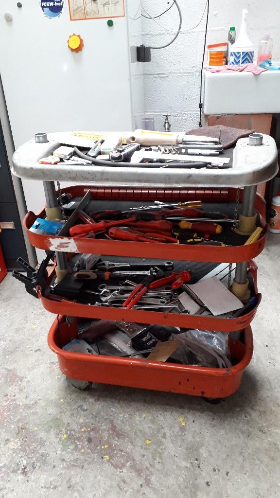 - Rode gereedschapskar model hazet assistentDeze kar is iets kleiner als de hazet enkel de kar, geen werk materiaal inbegrepenGebruikt Ophalen