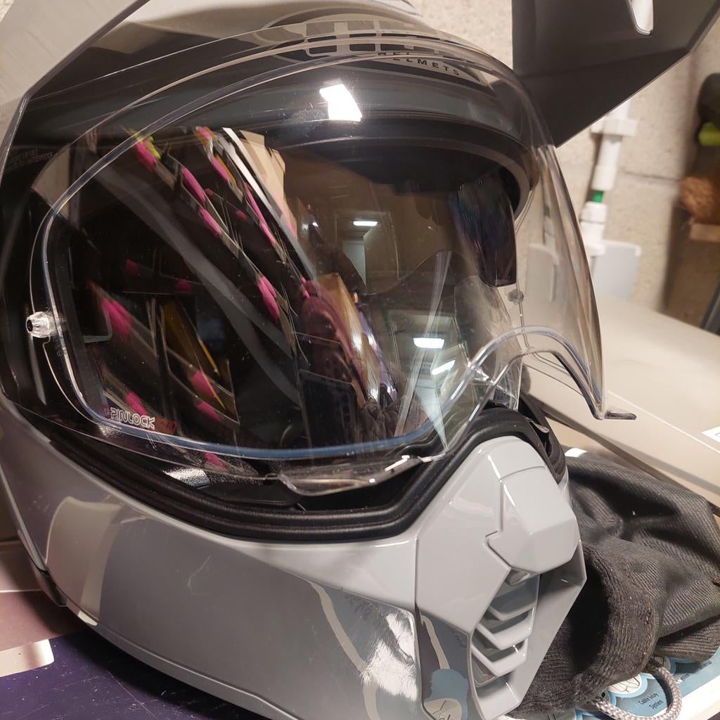 27 mrt 26MarkDeurne - Cabergh Ghost helmCaberg ghost helm xl zeer lichte full face helm, openklapbaar. Nooit gevallen, enkel puntjes steenslagTweedehands Ophalen