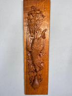 EergisterenTopadvertentieCatawikiHeel België - Decoratief ornament - Nederland - Houtsnede jagersornamentEen met de hand gesneden houten wandornament uit nederland, daterend uit ca. 1970–1980, Met afmetingen 71 cm hoog, 18,5 cm breed en circa 4 cm diep, in goede staat met kleine ouderdomssporen, voorzien