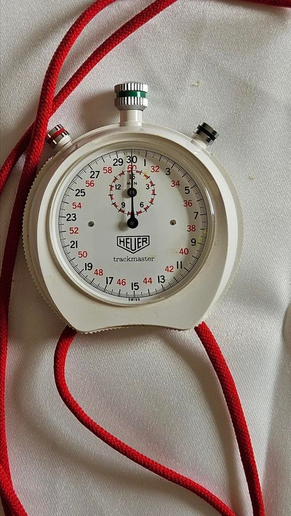 - ChronometerHeuer trackmaster mechanische stopwatch vintage jaren 1970 suisse made, merk tag heuer werkt uitstekend vaste prijs verzending of afhalenOphalen of Verzenden