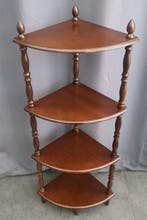 - Rek - Hout - Hoekrek met 4 plankenHoekrek van hout met vier planken in mid-century modern stijl, uit 1950–1960, gemaakt in europa, afmetingen 113 cm hoog, 45 cm breed en 32 cm diep, in goede staat met kleine tekenen van ouderdom en vl