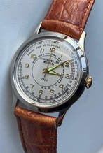 - Chronometer medical - Pulsometre - asthmomètre - ZonderChronometer medical, model pulsometre – asthmomètre met handopwindingsbeweging, chroomkleurige kast 37 mm, lederen band, standaard 180–200 mm, zeer goede staat met lichte gebruikssporen, geleverd in dNieuw