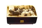 24 mrt 26willy afhaling Izegem,for saleNieuwpoort+Deel WestendeDecoratief, houten kistjeOphalenNieuwpoort+Deel Westende24 mrt 26 - Grote kistje met lege flessen wijn R.RaveelGrote kistje in hout met tafereel door kunstenaar r.raveel zeldzame verzameling met lege flessen wijn