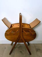 6 feb 26Renilde KellensRiemst - Naaidoos - Hout, MessingDeense mid-decentury modern naaidoos / bijzettafel / organizer, gemaakt van hout met messing accenten, uit de jaren 1950, in goede staat met kleine tekenen van veroudering. * Door het toenemende aanta