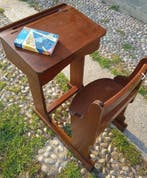 3 apr 26B.C.Zoersel & Deel BrechtAuthentieke oude schoolbankOphalen Gebruikt Hout SchoolbureauAuthentieke oude schoolbank houtZoersel & Deel Brecht3 apr 26 - Bijzettafel - hard hout - schoolbankKlein schoolbureau met een kantelbaar blad dat een opbergvak verbergtin het blad zit een uitsparing voor pennengemaakt van massief hout, donker kersenkleurig, in goede staat met enkele gebruikssporen,