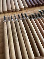 Hout is een veelzijdig en tijdloos materiaal dat een warme uitstraling geeft aan elk product. Het is sterk, kan goed worden bewerkt en is biologisch afbreekbaar. Daarnaast heeft hout vaak unieke patronen en kleuren, waardoor elk item een uniek karakter heeft.