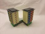- Faller, Vero H0 - Modeltreinlandschap (3) - DDR-stijlDrie h0-schaal ddr-stijl flatgebouwen uit de jaren 70, bestaande uit een faller hotel/kantoorgebouw (24×15,5×15,5 cm), een faller schakelflat (33×10×9,5 cm) en een vero tweelingtorenflat (16×16×13,5 cNieuw