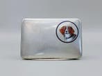 - Enameled Irish Red and White Setter Dog Portrait - Doos -Zeer fijn vervaardigde opengewerkte begin 20e eeuwse rechthoekige scharnierende doos van massief 800 zilver uit europa, 1900–1910, met een fijn geëmailleerde deksel waarop een portret van een ierse re