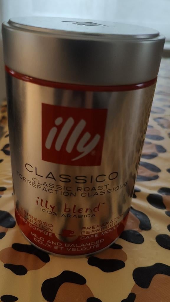 - Illy gemalen koffie: 15 blikken van 250 gramIlly gemalen koffie in blik - ongeopend - classico - classic roast - illy blend - 100% arabica - espresso preparation - mild and balanced 15 blikken van 250 gram door u af te halen cash betaling ik veOphalen