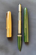 3 apr 26Dirk BijnensKuringen - Parker - 51 - Zonder minimumprijs - VulpenParker 51 vintage vulpen met goudgeplateerde punt en kunststof groengouden behuizing, gemaakt in de verenigde staten in het midden van de 20e eeuw; in goede staat met lichte ouderdomssignalen, werkendNieuw