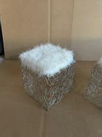 - Kruk (2) - Metaal, Faux bont, TextielEen paar krukken van gechromateerd metaal in de vorm van met elkaar verweven takjes, voorzien van kussens van synthetisch bont, gemaakt voor een kledingwinkel uit de jaren 80. Hét online veilinghuis vNieuw