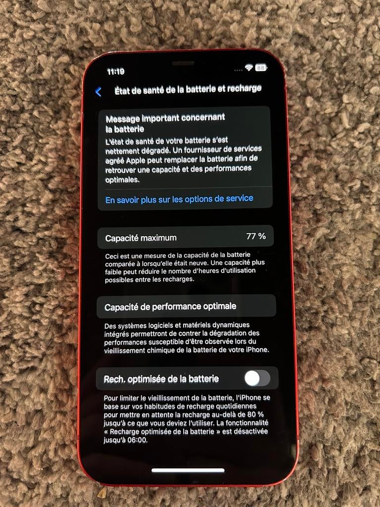 - Iphone 12 casséà vendre iphone 12. Fonctionne très bien, vitre arrière cassée, écran rayé. Voir photos capacité batterie maximum 77%. L’appareil est réinitialisé et prêt à l’emploi.Gebruikt Ophalen of Verzenden