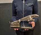 Om je jaguar beeld goed te onderhouden, is het belangrijk om regelmatig stof te afnemen met een zachte doek. Als het beeld buiten staat, controleer dan op weersinvloeden en reinig het indien nodig met milde zeep en water. Voorkom het gebruik van agressieve schoonmaakmiddelen, aangezien deze het materiaal kunnen beschadigen.