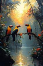 Populaire jungle dieren decoraties voor in huis omvatten onder andere wandstickers van tropische vogels of wilde dieren, schilderijen of prints van junglescènes en kussens met jungle dieren erop. Ze brengen een speelse en avontuurlijke sfeer in je interieur en zijn leuk voor zowel kinderen als volwassenen. Voeg ook planten toe voor een extra jungle gevoel.