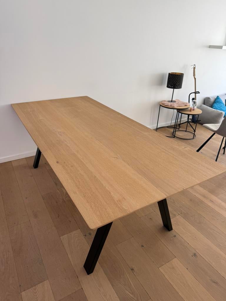 24 apr 26JelleGent - Tafel eetkamer .Eettafel (240x100x76,5) met metalen onderstel en fineerhouten eiken tafelblad. Juntoo nieuwprijs 1.200 Euro.Ophalen