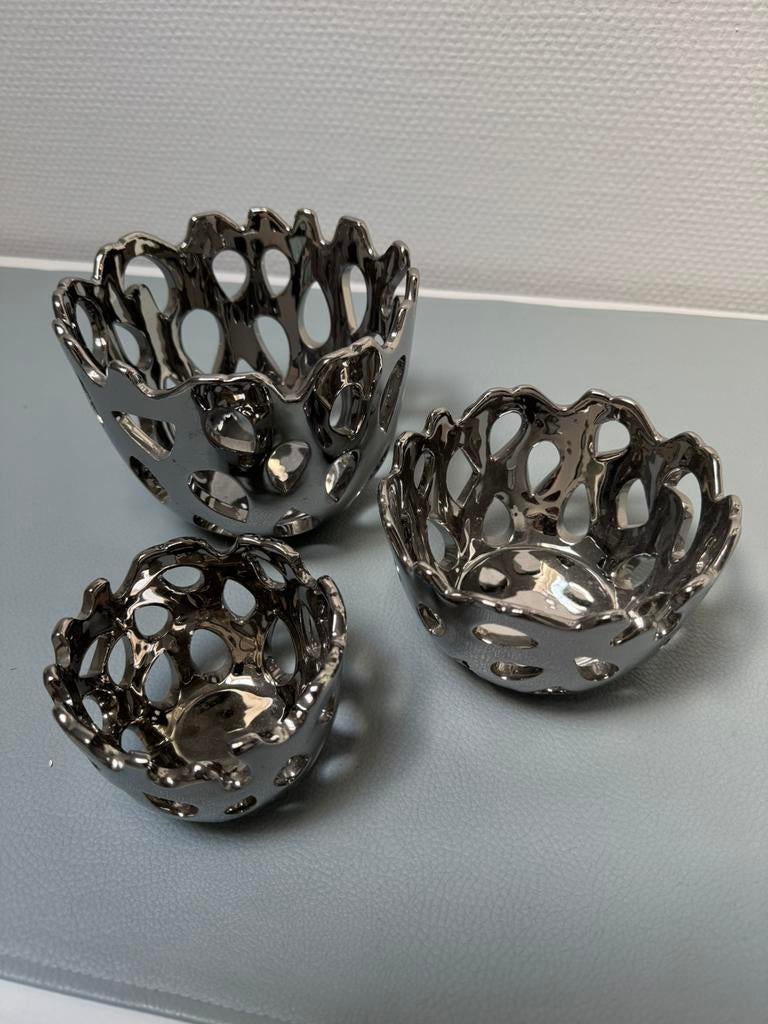 26 jan 26ChiaraDKortrijk - 3 theelichthouders Juntoo1 potje diameter 12 cm, h 9cm en 2 potjes diameter 8 cm h 7 cm 5 euro zwarte metalen schaal 12 euroZo goed als nieuw Ophalen