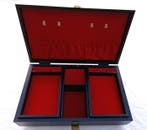 GisterenjijiChapelle-Lez-Herlaimont - Tallent - Muzikale juwelendoos - Verenigd Koninkrijk -Tallent-geproduceerde, in engeland gemaakte juwelenkist met een houten buitenkant bekleed met zwart nepleer, gouden messing klinknagels, een rode fluweren binnenkant, verwijderbare zijvakken en een ce