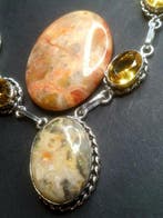 1 apr 26CatawikiHeel België - Zilver, 925, Crazy Lace Agate, Citrine, Handsteen &Mexicaanse crazy lace agate-sieraad met een natuurlijk hoofdstuk en glazen citrienaccenten op een 45 cm zilveren 925-ketting, totaal gewicht 45,38 g, nieuw, 2 stuks. Crazy lace agate, bekend als de „l