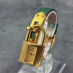 - Hermès - Kelly - Kelly(F81) - Femme - 1993Hermès kelly quartz montres femme, référence kelly(f81), vers 1993, boîtier acier inoxydable, cadran doré, bracelet en cuir vert, diamètre 20 mm, mouvement quartz.Nieuw