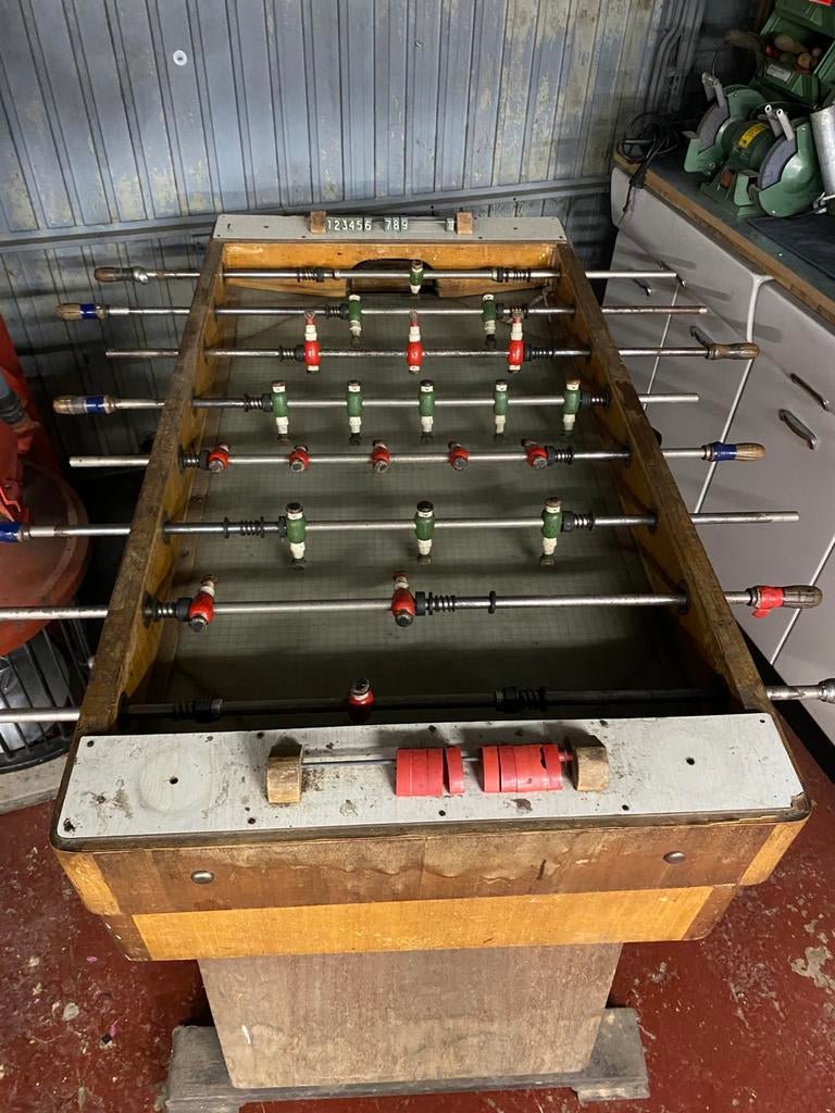 10 mrt 26KatrienAntwerpen - Voetbaltafel vintageOriginele franse vintage kicker van de jaren 50 . Werkt nog goed met telescopische staven, metalen mannetje. Mooi exemplaar !Ophalen