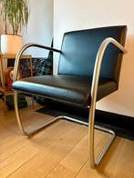 23 feb 26JorisTurnhout - Knoll - Ludwig Mies van der Rohe - Stoel - Leder, RoestvrijKnoll brno buisvormige stoel met zwarte leer en roestvrij stalen frame, vervaardigd in tsjechië (circa 2000–2010); hoogte 80 cm, breedte 58 cm, diepte 63 cm, in uitstekende staat met nauwelijks waarne