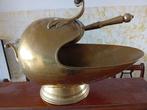 Oude vintage zinken houtskoolemmer met een draaggreep en een handvat om vast te houden bij het morsen van kolen. > afmetingen: hoogte: 50 cm onderste diameter: 24 cm bovenste diameter: 14,5 cm >