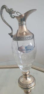 14 apr 26TopadvertentieCatawikiHeel België - Distillerie Buton - Kruik (3) - Kristal, Verzilverd - SetSet van drie stukken bestaande uit kristallen karaffen en een zilvergeplateerde metalen schaal van distillerie buton, italiaanse art déco, gedateerd circa 1950–1960 (en 1970–1980), met een diameter va