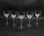 5 apr 26sigridWuustwezel - NASON MORETTI - V. Nason & C. - Drinkservies voor 6 (5) -Vijf witte wijnglazen van murano-kristal door v. Nason & c., Met een filigrane latticino zanfirico steel, met handtekening op de onderkant, hoogte 16,6 cm en diameter 7,9 cm. Prachtige set van vij