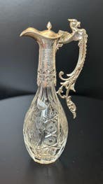 - Kruik - Kristal, VerzilverdKristallen decanteerfles met zilveren monturen en handvat, 30 cm hoog en 13 cm breed/depth, 835/1000 zilver, circa 1900, afkomstig uit het verenigd koninkrijk, in goede staat met lichte ouderdomsspore
