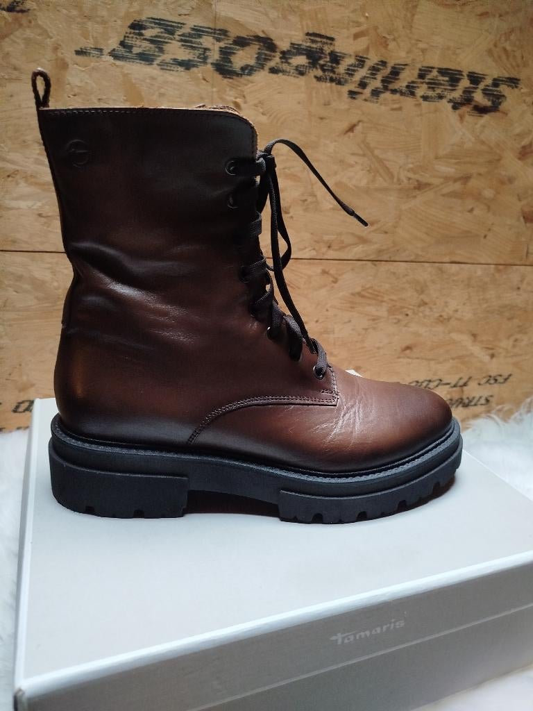 5 jan 26EsmeeMinderhout - Bruine leren laarsjes maat 41Nieuwe dameslaarzen, maat 41, kleine hak van 3 cm. Ritssluiting aan de zijkant en veters aan de voorkant. Warm interieur, merk remonte.Nieuw Ophalen of Verzenden