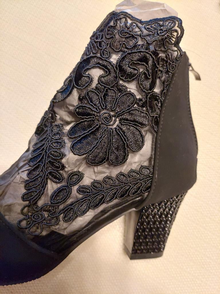 - Half hoge laarsjesTe koop, zwarte half hoge laarsjes, maat 41, materiaal daimler en kant, ritssluiting aan achterzijde, hielhoogte 7cm, nieuw, vraagprijs €30, tel. 0497 902416Ophalen of Verzenden