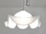 12 apr 26TopadvertentieCatawikiHeel België - Lustre - Lampe à poulie luxueuse / 50 - 200 cm - OpalineLustre katrol vintage avec abat-jour en verre opalin et corps en métal argenté, d’époque 1980–1990, hauteur réglable de 50 à 200 cm, 44 cm de largeur et de profondeur, 4 kg, porte une douille e27 et e