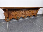 - Kapstok - HoutAntiek wandkapstok/wandrek van massief hout, gedateerd 1910–1920, met vier messing haken met engelenmotief; afmetingen 70 × 21 × 18 cm. Stijlvolle antieke wandkapstok / wandrek in massief hout, rijkel