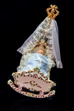 GisterenTopadvertentieCatawikiHeel België - Muziekdoos met beweging Reuge poppenhuis pop wieg ledikant -Houten wieg met zwitsers reuge speeldoosmechanisme, uit 1980–1990, gemaakt in duitsland, afmetingen 19 cm hoog, 16 cm breed en 23 cm diep, gewicht 0,5 kg, redelijk in conditie, getest en werkend, één
