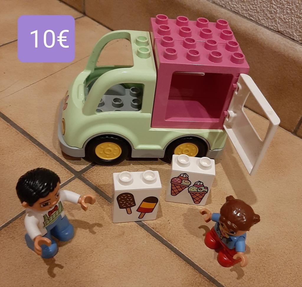 - Lego duplo: ijskarretje nr 10586Zgan met ijsjes en de lieve ijsventer. De blok met de centen ontbreekt hier. De rest is volledig. Een mooie aanvulling op je eigen reeksen. Ik heb meer duplo, kijk gerust verder....Zo goed als nieuw Ophalen of Verzenden