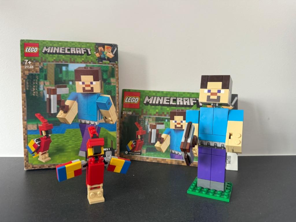 - Lego Minecraft 21148 Bigfigure Steve en zijn papegaaiLego minecraft 21148 bigfigure steve en zijn papegaai complete set met boek de set werd geleverd in genummerde zakjes na het einde van de collectie zijn er nog andere legosets beschikbaar, zie mijn anGebruikt Ophalen of Verzenden