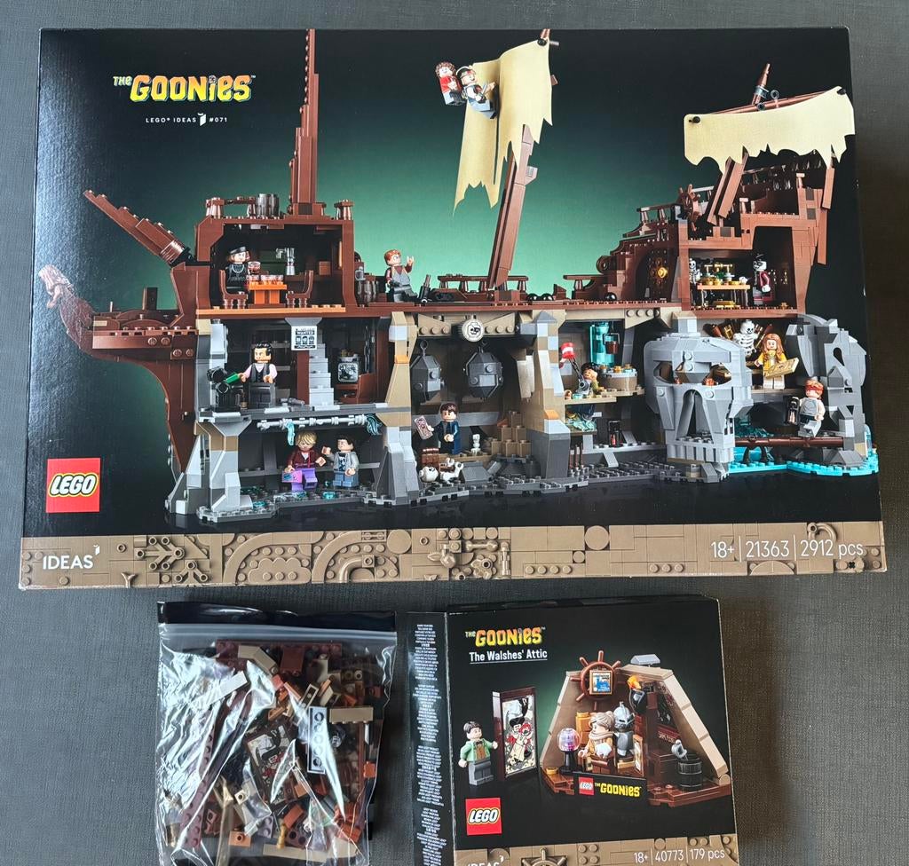 30 mrt 26Roy'S Gravenvoeren - Lego The Goonies 21363 + 40773Lego goonies et en walshes attic. Allebei eenmaal gebouwd, even op de kast gestaan en zorgvuldig afgebroken en weer in zakjes gestopt. Compleet met alle reservestukjes en minifigures sets enkel af teZo goed als nieuw Ophalen