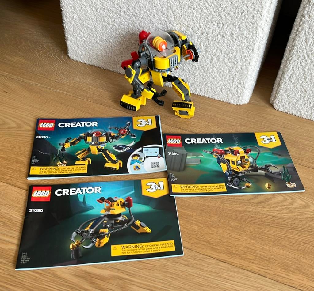 - Lego Creator 31090 Underwater RobotDe lego wordt verkocht zoals op de foto´s. Alle set zijn compleet. (Tenzij anders vermeld) kwaliteit van de stickers is te zien op de foto's. Bouwinstructies staan op de foto als ze aanwezig zijn.Zo goed als nieuw Ophalen of Verzenden