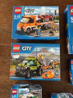 29 mrt 26JvrstrlnTheux - Lego Set - City - Sets 4643 en andereZeven lego citysets in ongeopende, verzegelde dozen, waaronder 4643 power boat transporter (2011), 60017 flatbed truck (2013), 60121 volcano explorer (2016), 60213 dock side fire (2019), 60053 race caNieuw
