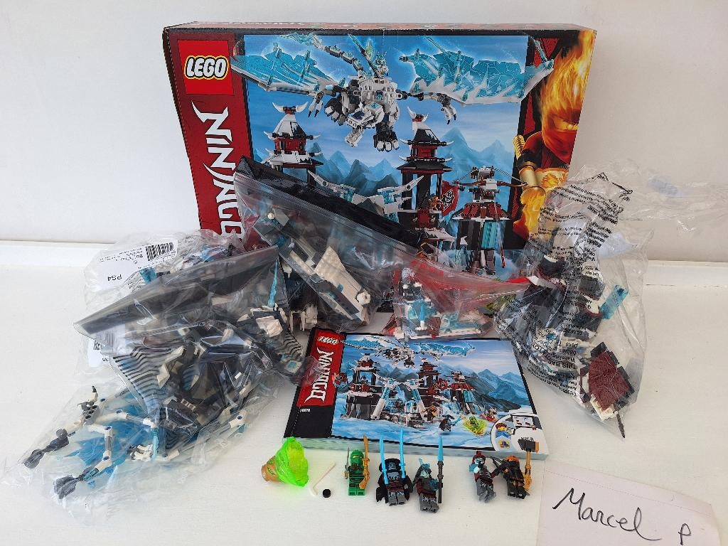 12 feb 26MarcelBeerse - LEGO ninjago 70678 - Castle of the Forsaken EmperorGroot ijskasteel met werkende kruisboog, bewegende torens en prachtige draak alle blokken en stickers aanwezig, niet alle minifigs: 4 figs zitten erbij (zie foto) met handleiding in goede staat, geenOphalen of Verzenden