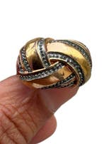 - Intrigerend verweven en rockabilly – ring voor mannen,Specimen: herenring uit de jaren zestig geïnspireerd door elvis, in goudkleurig metaal, gewicht 7,19 g, in goede staat. Verweven curiositeit en rockabilly: een herenring elvis, koning der rock, in gou