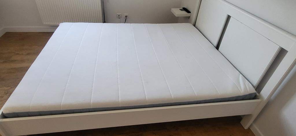 12 apr 26Anna StriethorstSchaarbeek - Bed van 140x200 cm + matrasBedframe + boxspring + 4 opbergladen van ikea. Afmetingen 140×200 cm. Zeer goede conditie. Witte kleur. + Traagschuimmatras van emma (jaar 2024). Afneembare en wasbare hoes in zeer goede staat.Gebruikt Ophalen